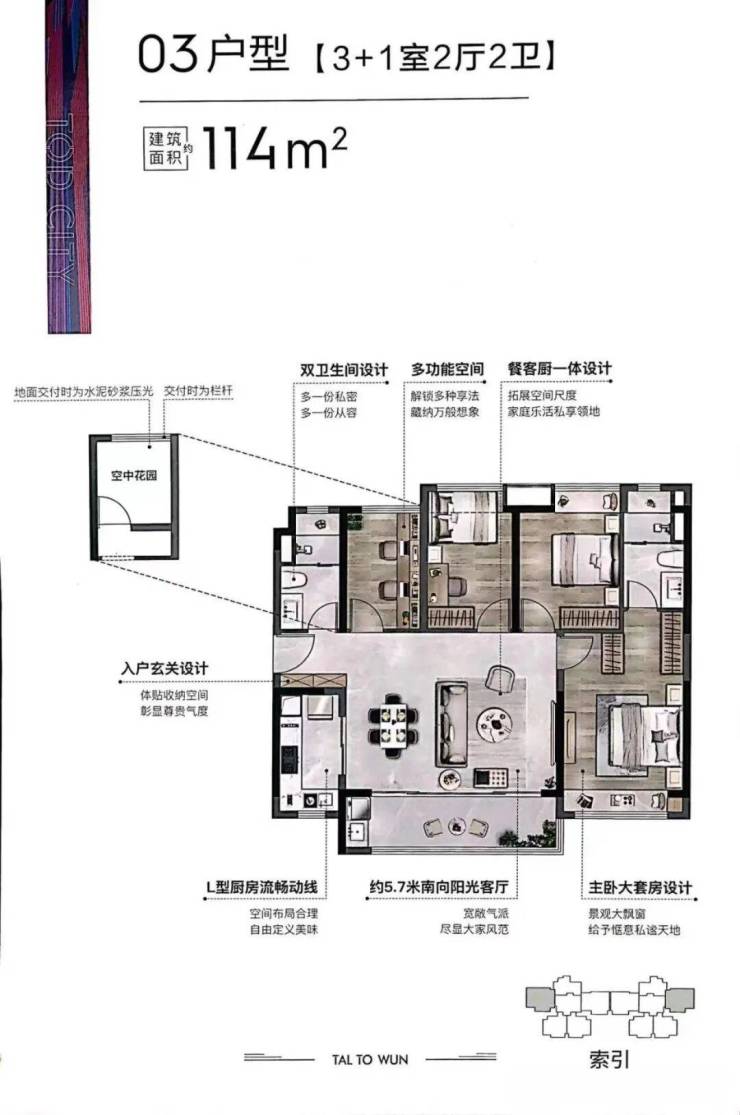 114㎡四房两厅两卫:合理分区,动静分离,营造舒适的居住环境。