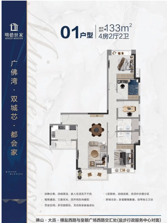 广佛湾区位优越,以广佛河为界,紧邻广州白鹅潭商务区与广东金融高新区。通过高快速路和轨道交通,可便捷连接广佛中心城区以及深圳、香港等湾区重点城市。荔湾、南海两地政府对广佛湾重点区域投资2500亿,启动156个重点项目,总规划面积约23km² ,大沥占9km² ,新怡明德世家正处于重点发展风口。而且,这里是广佛价格洼地,单价1字头起,总价120万起,仅为黄岐价格的1/2、广州价格的1/4 。周边二手房价坚挺,住宅保值性强,物业价值成长性高。售楼处电话:提供购房咨询的联系方式400-828-5661