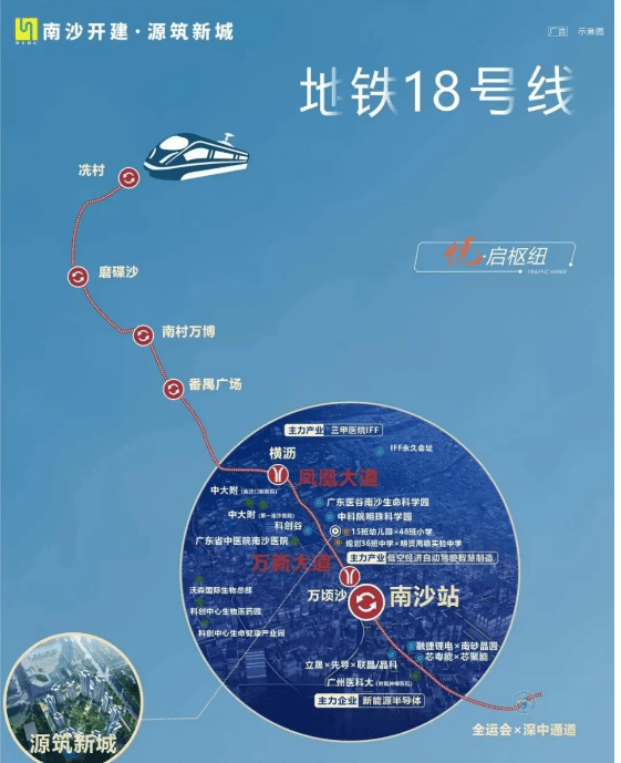 项目价格的长期潜力,离不开交通配套的支撑。项目紧邻规划中的南沙站(14 台 29 线,规模超广州南站),未来将成为湾区综合交通枢纽,通过深中通道可快速直达深圳(约 30 分钟),地铁 18 号线延长线(规划)开通后,可直达珠江新城,形成 “半小时湾区交通圈”。