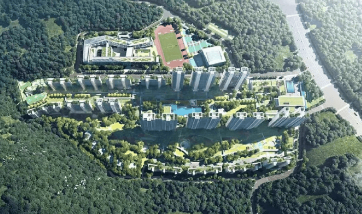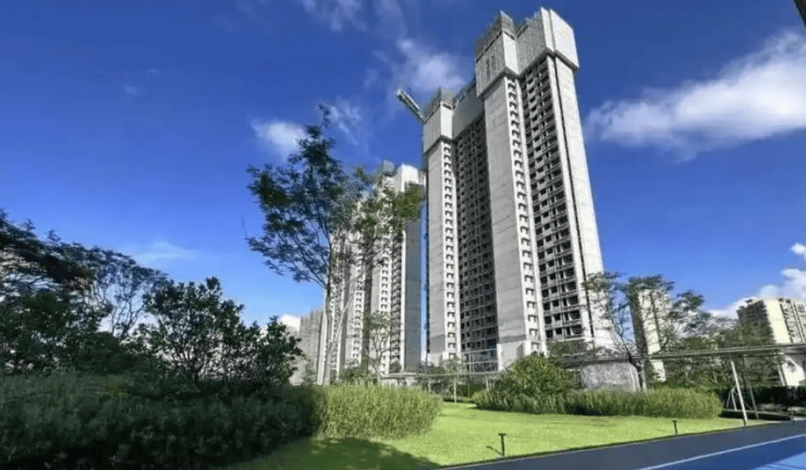 一期/在售地块:主体施工已全部完成,外立面呈现最终效果,景观绿化工程进入收尾阶段。