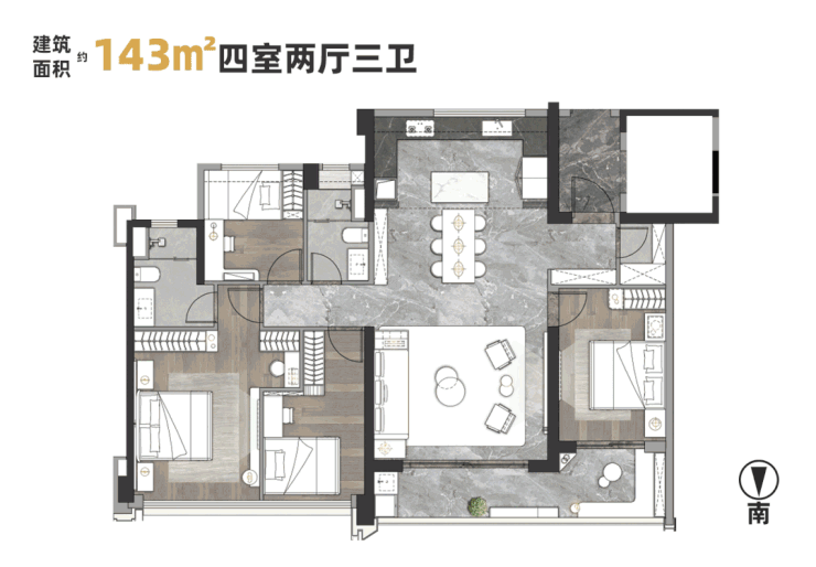 答:项目主力户型为126㎡、143㎡、170㎡大平层,均为精装交付,户型设计方正,南北通透,采光通风俱佳,注重空间利用率与居住舒适度,适合改善家庭居住。其中,126㎡户型为三房两厅两卫,适合三口之家;143㎡户型为四房两厅两卫,适合二孩家庭;170㎡户型为四房两厅三卫,适合三代同堂家庭。所有户型均配备观景阳台、独立衣帽间、U型厨房等,满足改善家庭的居住需求。