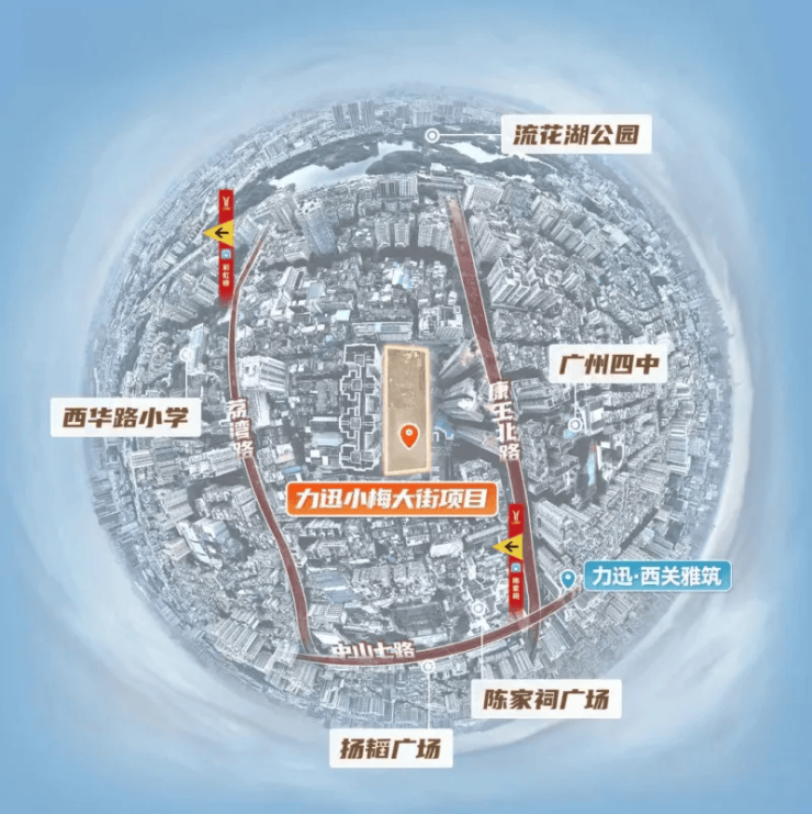 懂广州的人都知道,西关是这座城市的根与魂。从南越国宫署遗址的千年积淀,到明清十三行的商埠繁华,这里藏着广州作为千年商都的全部底气。力迅樾公馆择址小梅大街,这块2025年6月底出让的地块,总建面仅10446㎡,是荔湾区近些年出让的最小宅地,稀缺属性从出生就拉满。