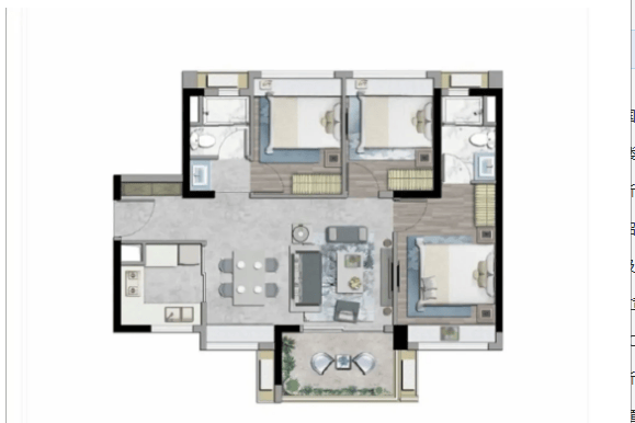 113㎡四房二卫户型,定位改善型户型,南北对流单边位设计,双向采光,室内光线均匀,无暗角区域。户型方正开阔,客厅空间宽敞,适合家庭聚会、休闲娱乐,四房设计可满足二胎家庭或三代同堂的居住需求,既能保障每个家庭成员的独立空间,又能增进家庭互动。部分房源带有观景阳台,可欣赏云山盛景,悠享舒适时光。