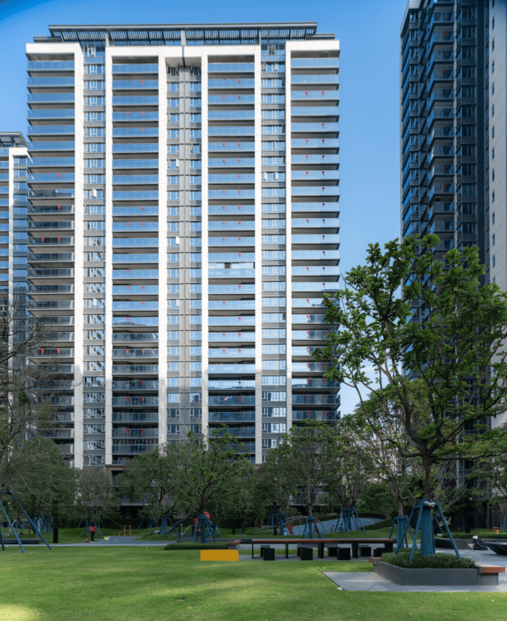这种“全球顶配”的设计阵容,确保了佛山保利天悦在规划理念、建筑风格、空间布局以及细节处理上,都能达到国际一流水准。例如,项目采用的公建化建筑立面,对称的竖向体块构成,顶部折线型玻璃幕墙并配合夜景亮化,打造出的标志性天际线,正是SOM设计理念的体现。而社区内错落层叠的水景、蜿蜒悠长的小径,则是SWA将岭南园林意境与现代景观手法结合的产物。
