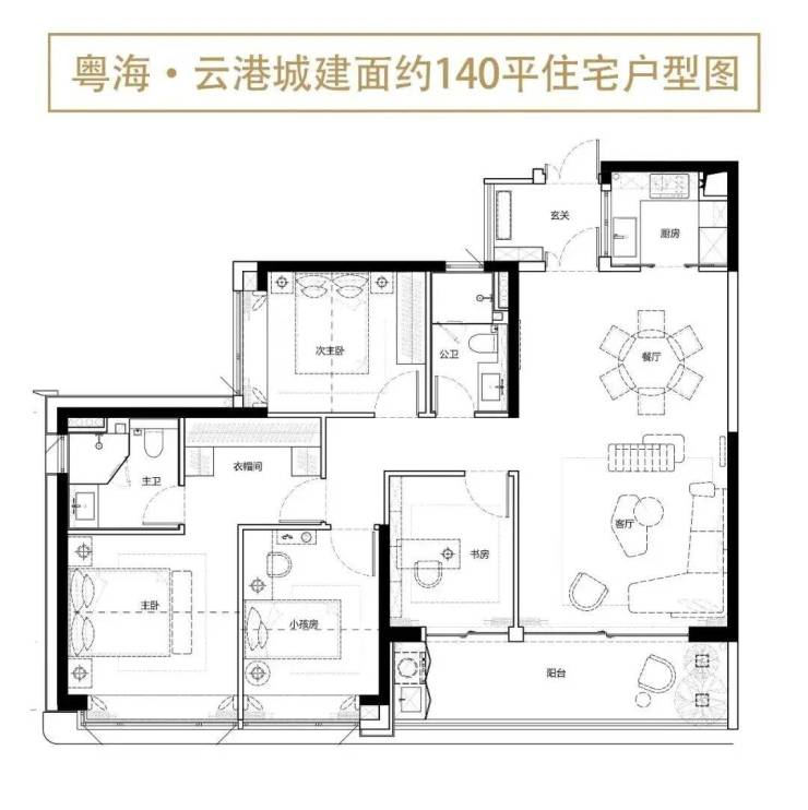 住宅部分是粤海云港城的核心产品。项目提供了多种户型选择,从刚需到改善,从紧凑到奢华,应有尽有。其中,一百四十平方米的四室两厅户型是最受欢迎的主力户型。这个户型设计科学合理,动静分区明确,客厅宽敞明亮,连接着超大阳台,采光通风极佳。四个卧室布局紧凑而不拥挤,主卧套房设计,带独立卫生间和衣帽间,私密性极强。对于三代同堂的家庭来说,这个户型既能满足每个人的居住需求,又能保证家庭成员之间的互动与交流。