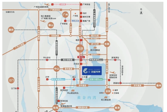 中交蔚蓝海岸位于粤港澳大湾区的地理中心——广州市南沙区南部片区,作为广州南拓战略的重要组成部分,这里正逐步发展成为一个充满活力的新城区。项目周边拥有完善的交通网络,包括3条纵向快速路(万环西路、凤凰大道、灵新大道)和3高速+1快速(南沙港快速、广澳高速等),使得居民能够便捷地到达广州主城区及周边城市。此外,地铁18号线二十涌站(在建)距离项目仅约500米,7站即可直达珠江新城,未来还可换乘多条线路。深中通道、港珠澳大桥等跨海大桥以及广深沿江高速等高速公路则进一步增强了项目对外联系的能力,实现了“湾区1小时、全球3小时”的高效通勤圈。