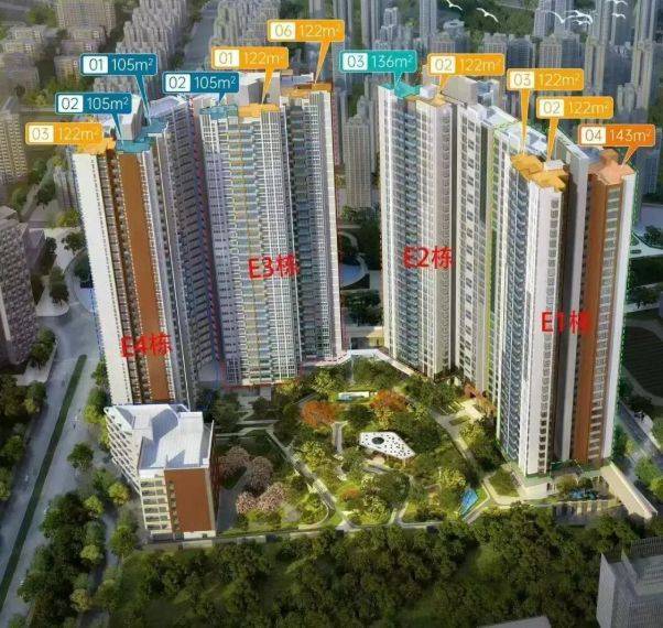 产品规划:由四栋高层住宅构成,包含 105㎡四房、122㎡五房及 143㎡五房(双主套)三个户型。总建面 120000㎡ ,总占地 17000㎡ ,总户数 682 户 。绿化率 35% ,梯户比为 3 梯 5 户或 3 梯 6 户,层数 32 层,车位比 1:1.2 ,物管费 4.17 元 /㎡ ,精装交付,目前处于清盘阶段,均为现楼出售。售楼处电话:4009909752 。
