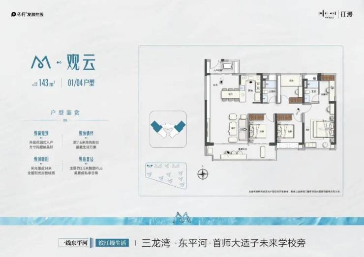 保利阅江台提供的户型种类丰富,满足了不同家庭结构的需求。主力产品涵盖98-131㎡带装修三四房及172-273㎡头排江景大平层。其中,97㎡三房户型配备独立玄关和U型厨房,空间利用率高;131㎡户型采用南北对流双阳台设计,四开间朝南,特别适合二胎家庭或三代同堂居住;而172㎡大平层则为两梯两户设计,南向望江,双套房配置,客厅面积近31㎡,可灵活改造,充分满足高端改善需求。这些精心设计的户型,无论是实用性还是舒适度都达到了很高的标准,为购房者提供了多种选择。
