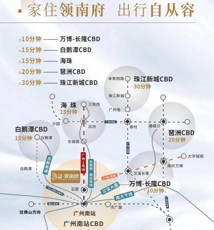 通过2号线、22号线、广佛环线、海珠湾隧道等多维交通,珠金琶、白鹅潭、海珠,全都能直达。