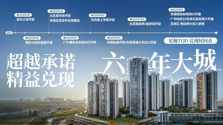 越秀星瀚TOD的成功,源于其强大的“兑现力”。不同于许多仍停留在沙盘阶段的新盘,星瀚TOD用六年时间,将一张规划图变为一座活力之城: