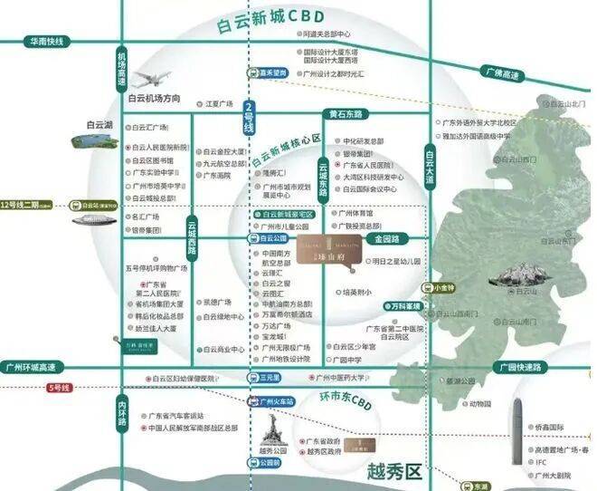 :白云新城 CBD 作为广州重点发展区域,接棒珠江新城成为广州会晤世界的门面,政府重磅投资 1.67 万亿元,千亿总部经济带崛起,世界 500 强资本与高阶精英云集。万科瑧山府位于云城行政、居住与总部经济三板块珍贵交界处,是 CBD 核心区内稀有的住宅供地,地段价值将随区域发展持续攀升,为业主带来无限潜力。