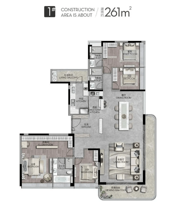 答:优先选择 2 栋、3 栋、4 栋的中高楼层(10 层以上),这些楼栋处于社区江景头排位置,无遮挡视野更佳;105-140㎡户型适合改善家庭,253-260㎡大平层适合高端需求,其中 260㎡户型拥有 270° 江景视野,是江景资源的最优选择,具体可结合预算与家庭需求综合考量。