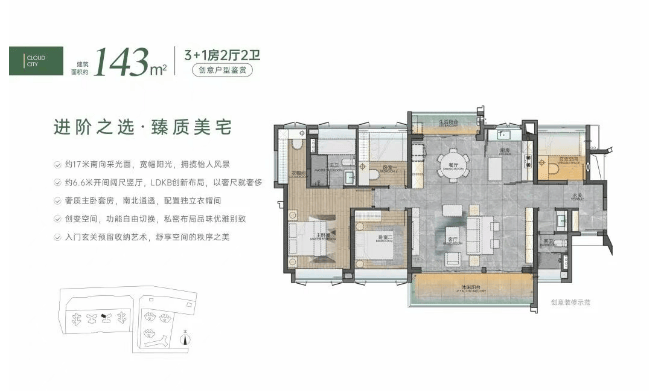 二期:110㎡、129㎡、143㎡的大户型,交楼时间为2026年12月。