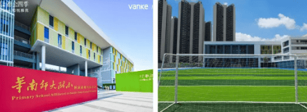项目自身配建了18班幼儿园和华南师范大学附属小学(48班),这所小学是广东省唯一一所受直属广东省教育厅和华南师范大学双重领导下的省一级学校,被评为“全国百强小学”。目前对口中学为新塘三中,已加入增城广附教育集团,确保教学质量和标准的统一。
