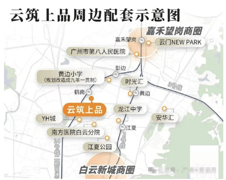 云筑上品距离在建的14号线鹤南站仅约200米,步行至2号线黄边站也只需约1公里。未来,随着14号线二期(嘉禾望岗-广州火车站)的开通,居民们将享受到更加便捷的出行体验。自驾方面,从项目出发大约35分钟即可到达天河、海珠等CBD核心区域。此外,社区地下二层车库与14号线鹤南站A出口直接联通,让归家之路更加从容便捷。