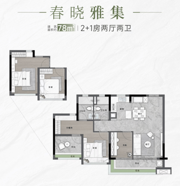 主力户型:78㎡2+1 房、89㎡3+1 房、118㎡4+1 房、140㎡4+1 房,官方实测实用率高,空间无浪费。