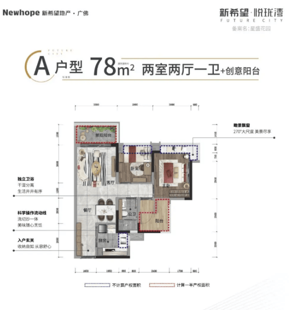 A户型:78㎡三房两厅一卫,片区最低总价,适合首次置业或单身人士,首付30万即可上车,精致实用。