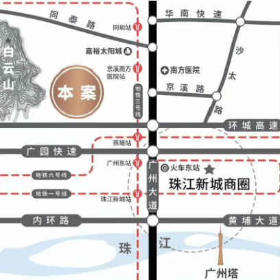 交通枢纽:距离3号线京溪地铁站仅300米,6站直达珠江新城;坐拥华南快速、广州大道、机场高速三大动脉,半小时畅达珠江新城、天河北、琶洲三大CBD;