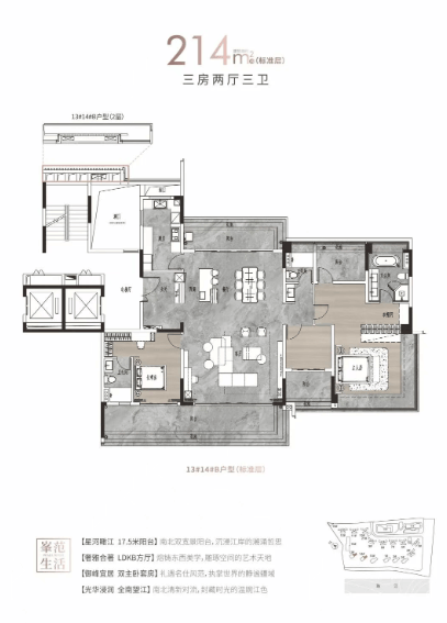 江语上品苑内的户型丰富多样,面积从125平方米至313平方米不等,包括四房两厅两卫至大平层的不同选择,充分满足了不同家庭结构的需求。每个单元均采用精装修交付,室内设计精致考究,功能分区合理,既保证了居住的舒适度,又体现了现代都市生活的品质追求。
