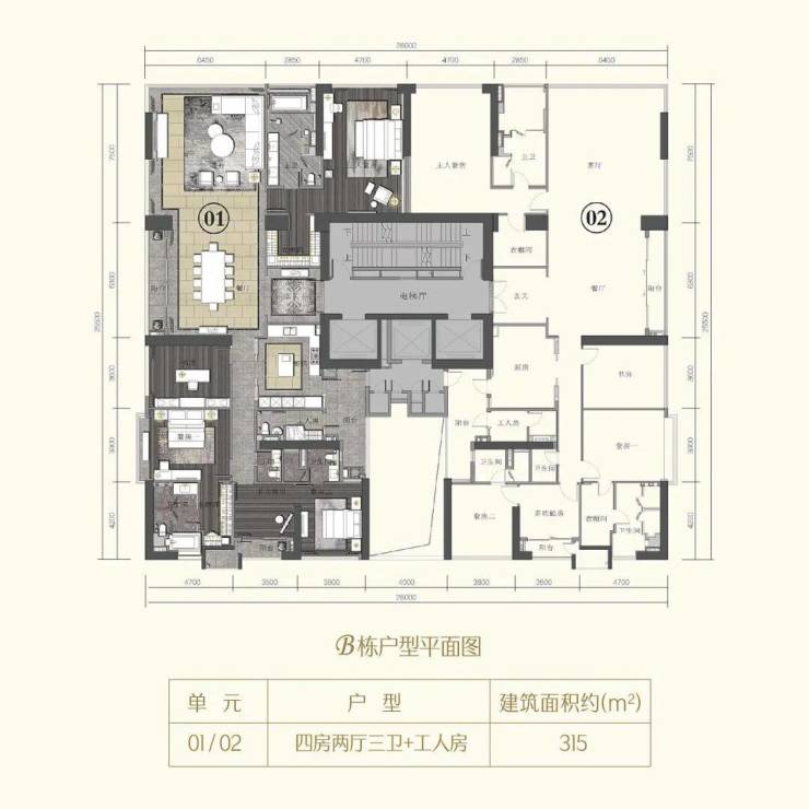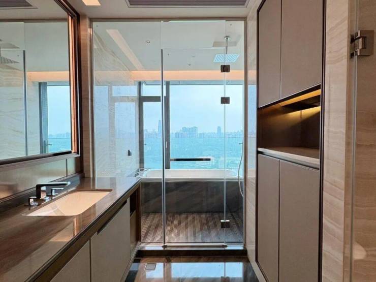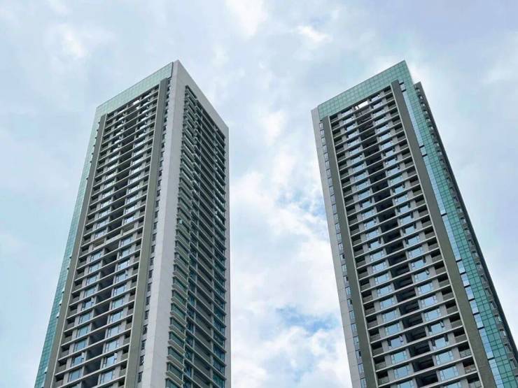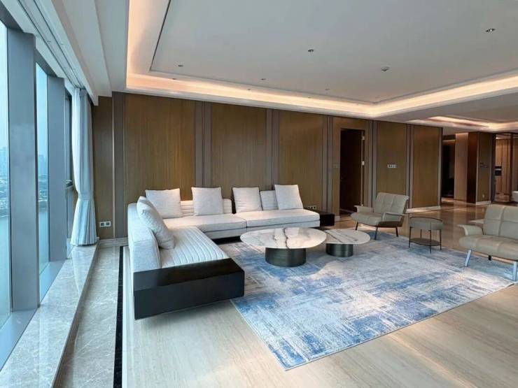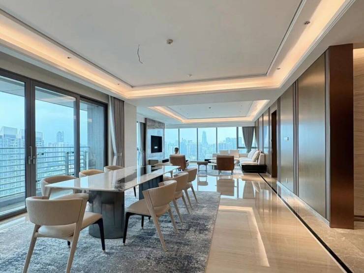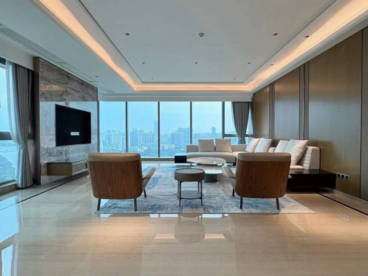 海珠半岛三期住宅,分为B、C两栋建筑,两栋错落分布,产品面积仅有2个户型:290、315m²。三梯两户设计,室内层高3.4米,起步门槛高,产品圈层纯粹,入户大堂9米挑高,住宅为4-43层。