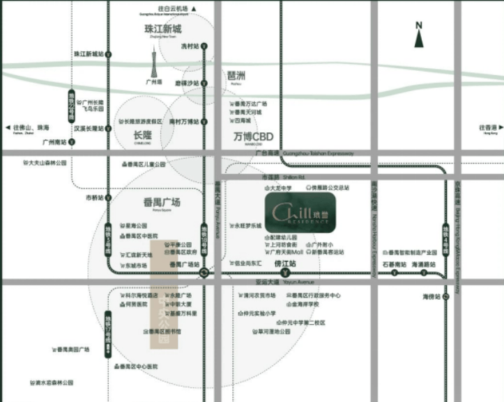 保利琅誉,正是保利发展在广州市番禺区重磅推出的“誉”系标杆作品。项目的落子,并非偶然,而是基于对城市发展脉络的精准洞察与对未来价值高地的前瞻布局。项目选址于番禺广场TOD核心辐射区——区府新城板块。这一板块,绝非普通的城郊结合部,而是番禺区举全区之力打造的未来城市新中心,是旧区府板块的自然延伸与全面升级。如果说旧的番禺广场板块代表了番禺过去的辉煌与成熟,那么区府新城板块则承载着番禺未来二十年的梦想与希望。这里由配套、教育、交通、医疗四大核心驱动要素强力引擎,旨在打造一个高品质、迭代型、国际化的现代宜居新城。