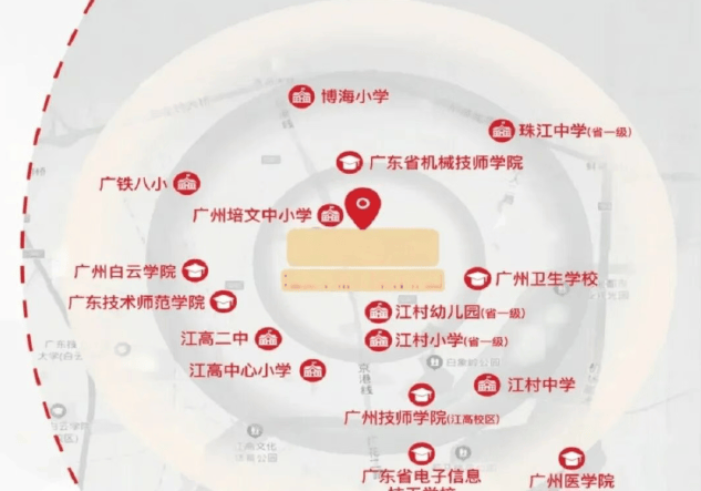 教育配套方面,广州培文中学和广州培文小学已经开学,这两所学校采用全寄宿制,并提供北大教育资源,师资力量雄厚,95%的教师具有硕士学历,实施国际化标准双语教学。此外,自建的18班社区公立华师品牌幼儿园也已开学,从幼儿园到中学都是下楼即达。虽然北大培文是民办性质学校,但部分学位会由白云区教育局统筹安排,增加了人户一致地段生摇号入读的机会。如果未能进入北大培文,附近还有江村小学和广州铁路第八小学等公立学校可供选择。