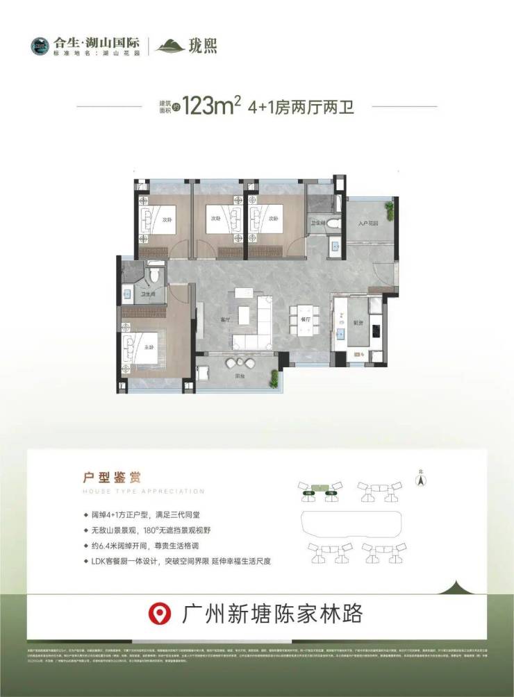 ②123方 4+1房户型【亮点】无敌山景景观,180°无遮挡景观视野,约6.4米阔绰开间,LDK客餐厨一体设计