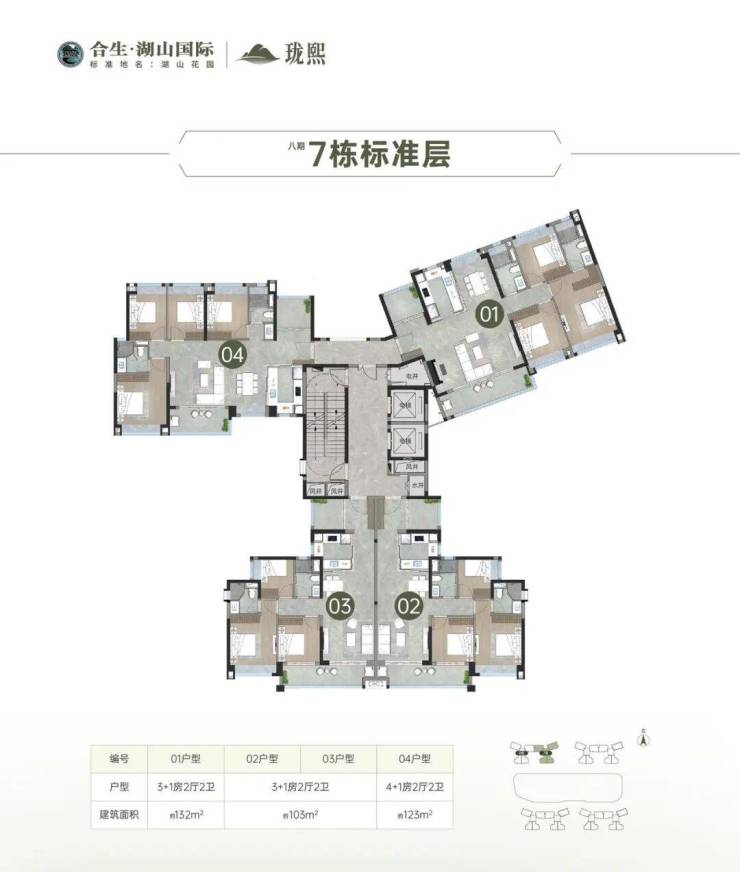 ④132方 3+1房户型【亮点】3+1房户型,实用率超八成,百变空间,约6.2米奢阔客厅,三开间朝南,南北景观双阳台设计,LDK客餐厨一体设计