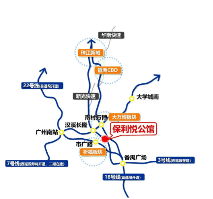 《保利悦公馆》享有5横5纵的密集交通网络,包括新光快速、华南快速等主要干道,使得驾车出行极为方便。从这里出发,10分钟可达万博商务区,25分钟抵达琶洲,30分钟到达珠江新城。尽管最近的地铁站直线距离约1公里,但通过购买电动车或使用社区巴士接驳至汉溪长隆站,也可轻松解决通勤问题。