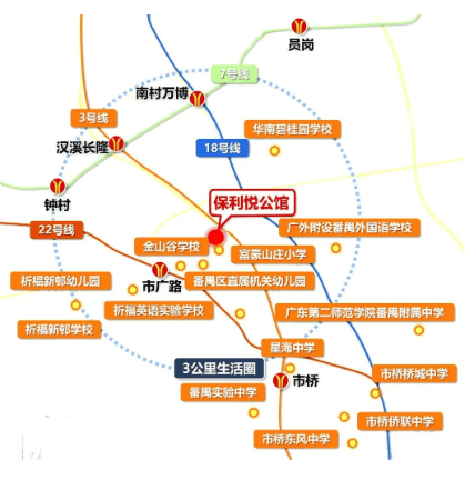 位于广州市番禺区东环街道兴学路的《保利悦公馆》,虽然不在万博核心范围内,但其所处的市广路板块已相当成熟。周边有招商金山谷、富豪山庄、中铁建花语岭南等住宅项目,形成了浓厚的生活氛围和独特的烟火气息。此外,项目紧邻正在改造中的里仁洞村,未来将受益于该区域的全面升级。