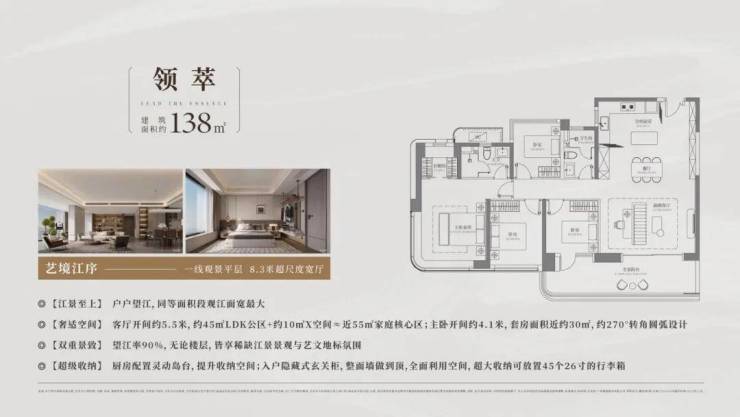 荔湾区广州尚滨道-滨江天地的产品设计充分考虑了不同家庭的居住需求,主力户型涵盖建面约109-275㎡的3-5居室,其中二期尚滨道即将推出建面约128-138㎡及约183-238㎡新规户型,户型布局方正,南北通透,采光通风俱佳,得房率高达85%以上。特别是大平层户型,拥有270°环幕江景视野,将珠江美景尽收眼底,成为板块内稀缺的江景产品。