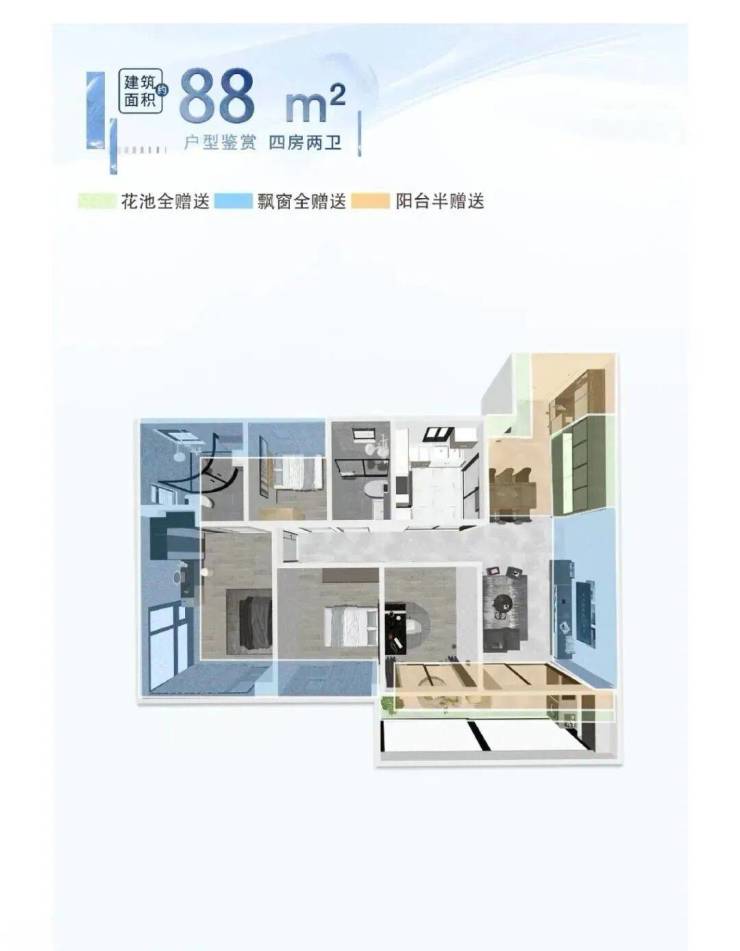 项目推出的户型从76㎡至92㎡不等,均采用了创新的“零飘窗”设计,大幅提升了室内的实用面积。尤其是76㎡的三房两卫户型,不仅做到了全南向布局,还配备了双卫生间,极大地提高了生活效率和舒适度。