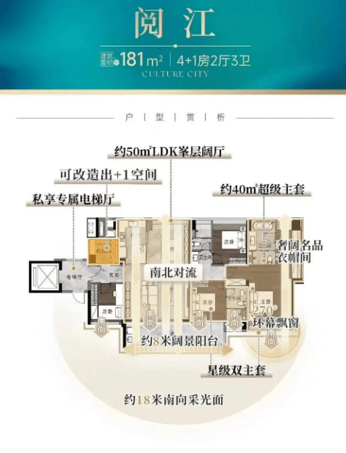 建面约181㎡大平层四房三卫:终极改善范本,拥有约18米南向IMAX湖景风光,全屋南北对流设计,最大限度的无遮挡瞰江望湖。
