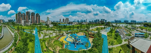 园林设计由国际知名景观团队操刀,以“一江三园”为骨架,内部打造多层次立体绿化体系。中央景观轴串联儿童乐园、健身步道、林荫广场、亲水平台等功能空间,植被选型兼顾四季观赏性与本地适应性,乔灌草搭配丰富,形成微气候调节系统。社区内还设置风雨连廊、无障碍通道、智能安防系统,全方位提升居住体验。