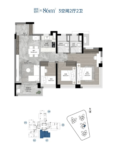 加粗建面约 86㎡三房两厅一卫:刚需主力 紧凑实用