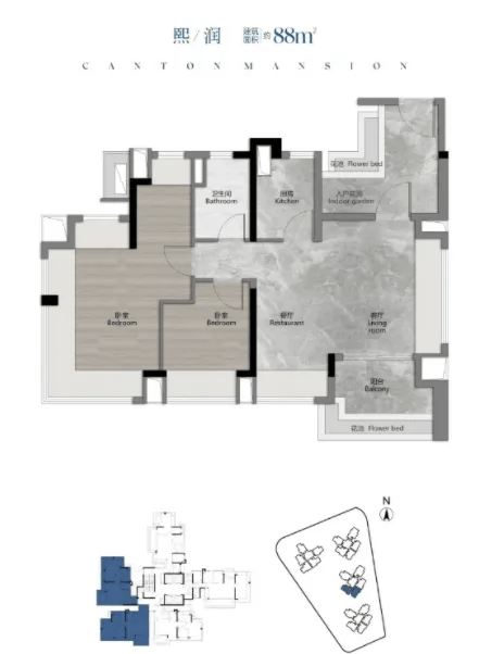 加粗建面约 88㎡三房两厅两卫:南向三开间 私密性拉满
