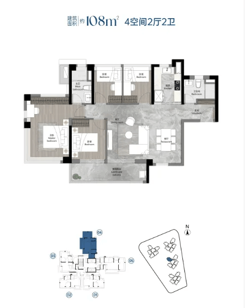 加粗建面约 108㎡四房两厅两卫:超高拓展 三代同堂首选
