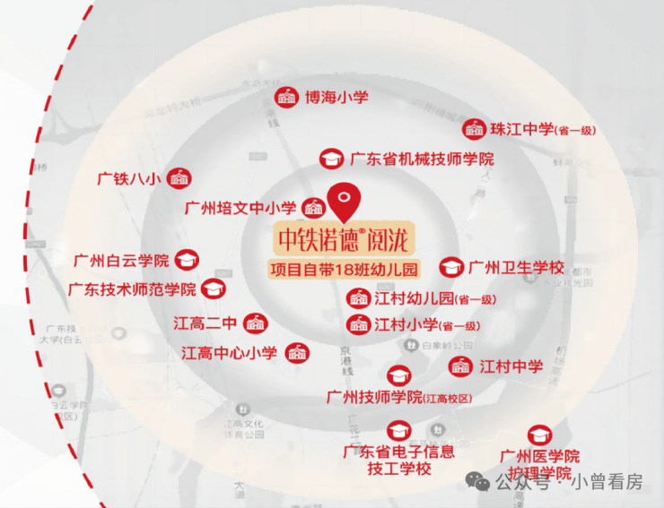 小学/中学:项目旁已开学的广州培文外国语学校(含小学部、中学部),是一所实行国际化教育、全寄宿制管理的优质民办学校,可共享其优质师资与教育理念。请注意: 根据广州市教育局“人户一致、就近入学”的公办学校招生政策,项目具体的公办小学、初中学区划分,需以项目交付后,当年白云区教育局公布的最新招生地段划分方案为准。目前,江高镇拥有多所省、市一级学校,教育资源雄厚。