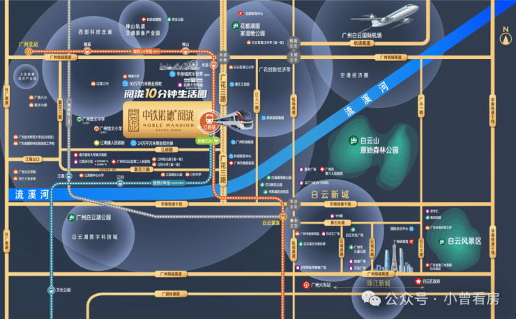 中铁诺德·阅泷,不仅仅是一个楼盘,它是世界500强央企中铁置业献给广州的一部“城”意之作。我们以约40万㎡的大城体量,在白云北核心,提前兑现了未来城市的理想生活样本:双地铁(在建)的便捷、千亿产业园的活力、全龄优质的教育、超50万㎡的商业繁华、6万㎡的实景岭南园林,以及央企百分百的兑现保障。