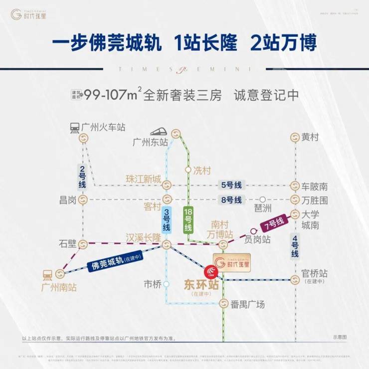 时代珑星的价值潜力,在区域、交通、配套、产品等多维利好加持下持续释放,选择这里,就能开启万博 CBD 旁的理想生活。区域利好方面,万博 CBD 产业集聚效应显著,企业与人口持续导入,带动居住与消费需求增长,为项目价值提供长期支撑;作为广州 CBD 中轴延伸带,政策扶持力度大,区域发展潜力巨大。交通利好方面,城轨东环站(建设中)开通后,将实现与地铁线网无缝衔接,1 站长隆、2 站万博,通勤效率大幅提升,吸引万博、珠江新城等核心区工作人群,保障房产流动性与需求。配套利好方面,9 大商圈 + 菁英教育圈,商业、教育资源成熟且优质,居住便利性与生活品质高,能持续吸引购房者。产品利好方面,99-107㎡奢装大三房适配市场主流需求,国际一线品牌装标提升产品竞争力,2 字头诚意价格降低入手门槛,性价比突出。多维利好叠加,让项目成为万博 CBD 旁的优质选择,选择这里,开启 “便捷、品质、潜力” 兼具的理想生活。