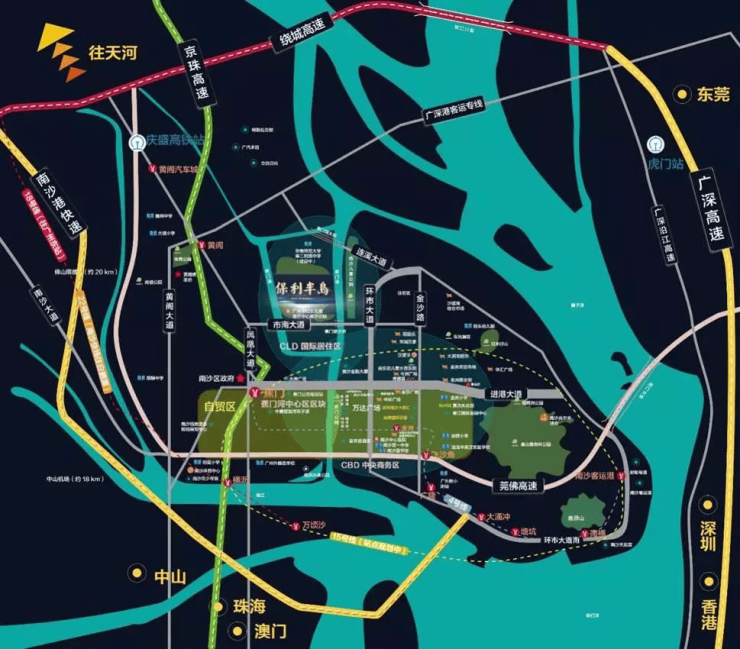 保利半岛位居蕉门河板块,地理位置优越且交通系