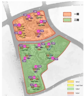 高新仕林苑是由区属国企高新区集团开发的高端住宅项目,位于广州市黄埔区长岭居板块。项目占地约11.6万㎡,总建筑面积达到36.51万㎡,容积率仅为2.24,绿化率高达44.9%,为居民提供了一个低密度、高绿化的居住环境。整个项目分两期开发,共规划有14栋28-31层的住宅楼,总计1395户。