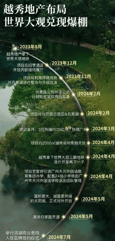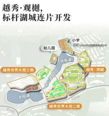 观樾天湖所处的奥体板块,是天河第三中轴的核心 CTD 区域,背靠超 20 万技术人才与八大优势产业,发展潜力巨大。越秀自拿下世界大观一期地块后,接连斩获二三期地块,总地价破百亿,得以在市中心打造罕见的临湖连片开发区域。