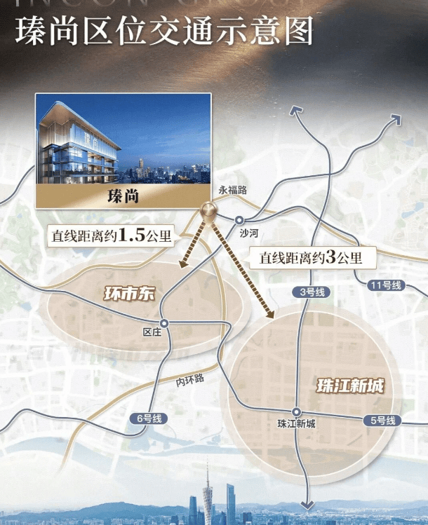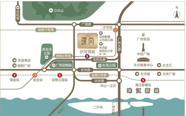 交通是衡量城市资产价值的重要标尺。瑧尚坐拥地铁5号线、6号线与11号线三线交汇的黄金优势,距离6号线沙河顶站B出口仅约500米。1站即可换乘广州首条大环线——11号线,2站直达区庄换乘5号线,3站抵达淘金,6站即达北京路、珠江新城,一线直达琶洲。