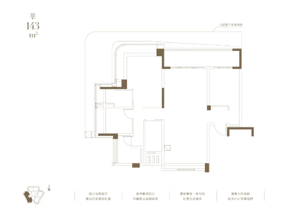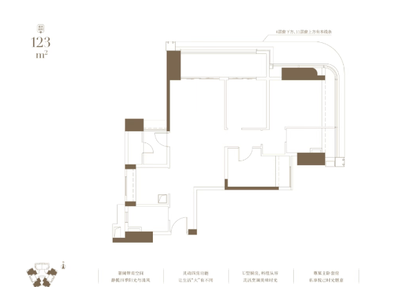 瑧尚总建筑面积约5.3万㎡,仅规划208套住宅,主打建面约123-177㎡阔绰四房,产品定位精准聚焦高端改善客群。项目采用高低区分区设计:低区(4-11层)主推108-123㎡三四房,满足刚需改善需求;高区(13-37层)专供133-143-177㎡四房,专为塔尖人群定制。其中,133㎡户型北向直望白云山,143㎡西南朝向采光优越,177㎡东南向视野开阔,每一席皆为珍藏。