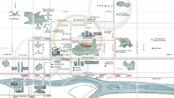 项目距离珠江新城CBD、金融城CBD和科学城CDB均较近,通过自驾前往这些核心区域仅需半小时左右,交通便利。