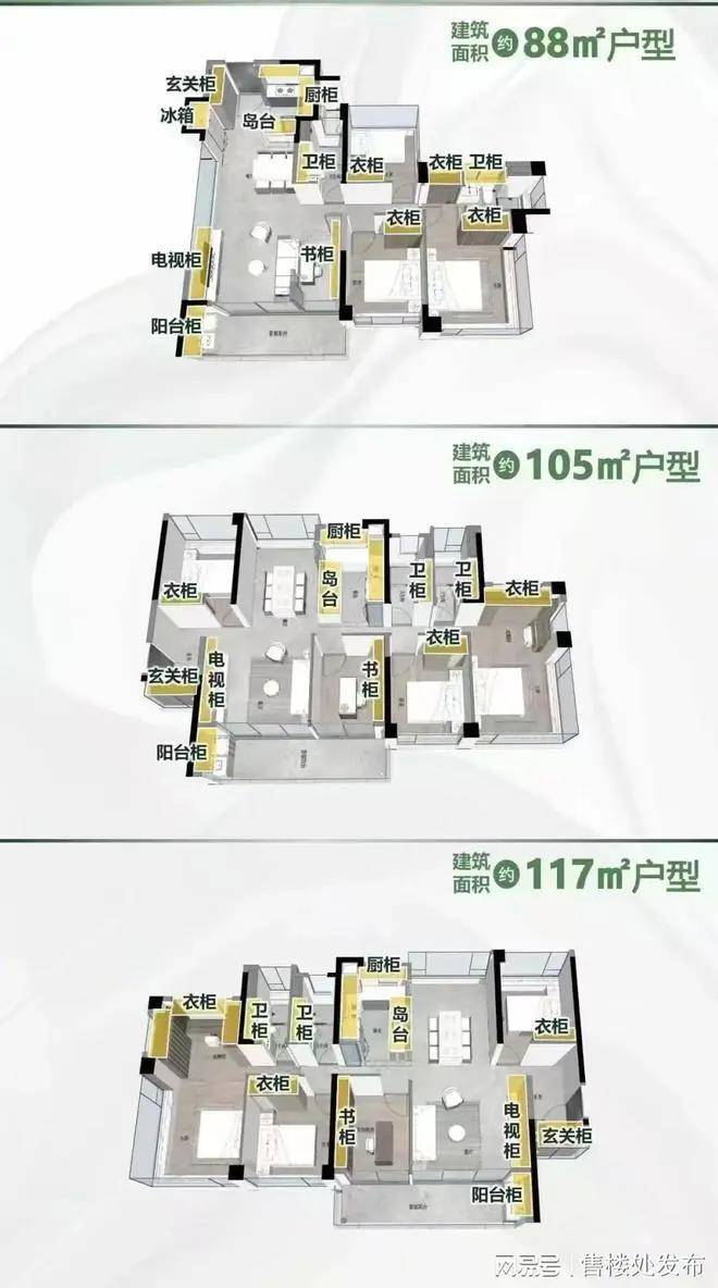 产品:88㎡实现四房功能,117㎡对标150㎡尺度,空间利用率行业领先。