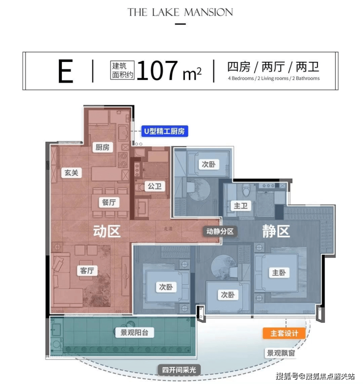 建面约107㎡的四房,亮点除了明朗的四开间朝南,还带约6.7米的超长南向巨幕阳台,让采光铺满各一寸房间。从客厅贯穿次卧,主卧配置超大转角衣帽间,配备全景式飘窗,更添尊贵感和私密性。