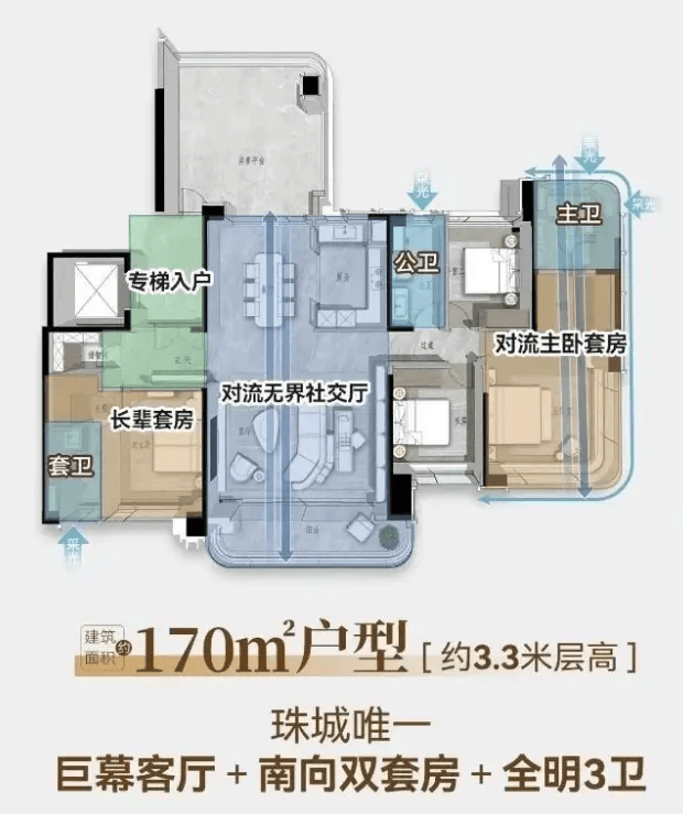 所有户型均采用 “南北通透、全明格局、动静分区” 的设计理念,最大化提升居住舒适度: