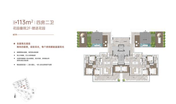 “玥境”系列滨江小洋楼,主打112-124㎡低密叠院,是广州市场上罕见的类墅级产品。项目叠院小高层层高仅5层,容积率极低,最大亮点在于其超高的赠送率。